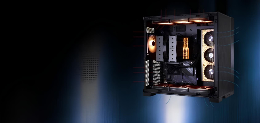 Hava akışı ne kadar doğrudan olursa, soğutma performansı o kadar iyi olur. Ön tarafa ekstra 3 fan eklenmesini mümkün kılan dikey GPU kiti ve ön ağ kiti sayesinde O11D EVO, GPU ve CPU'ya güçlü ve doğrudan hava akışı sağlayabilir.
