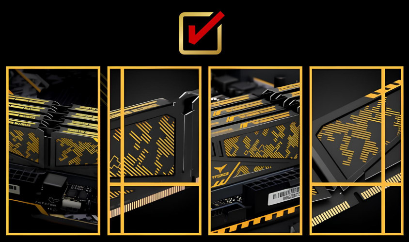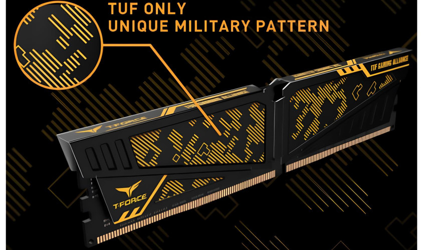 TeamGroup tasarım ekibi, büyük bir ustalık ve yaratıcılıkla, asimetrik kesim ısı dağıtıcı tasarımını ve eşsiz askeri kamuflaj desenini T-Force Vulcan TUF Gaming Alliance’ta bir araya getirdi. Özgün tasarımıyla T-Force Vulcan TUF Gaming Alliance bellekler, askeri model tarzını seven oyuncular için mükemmel bir seçimdir.
